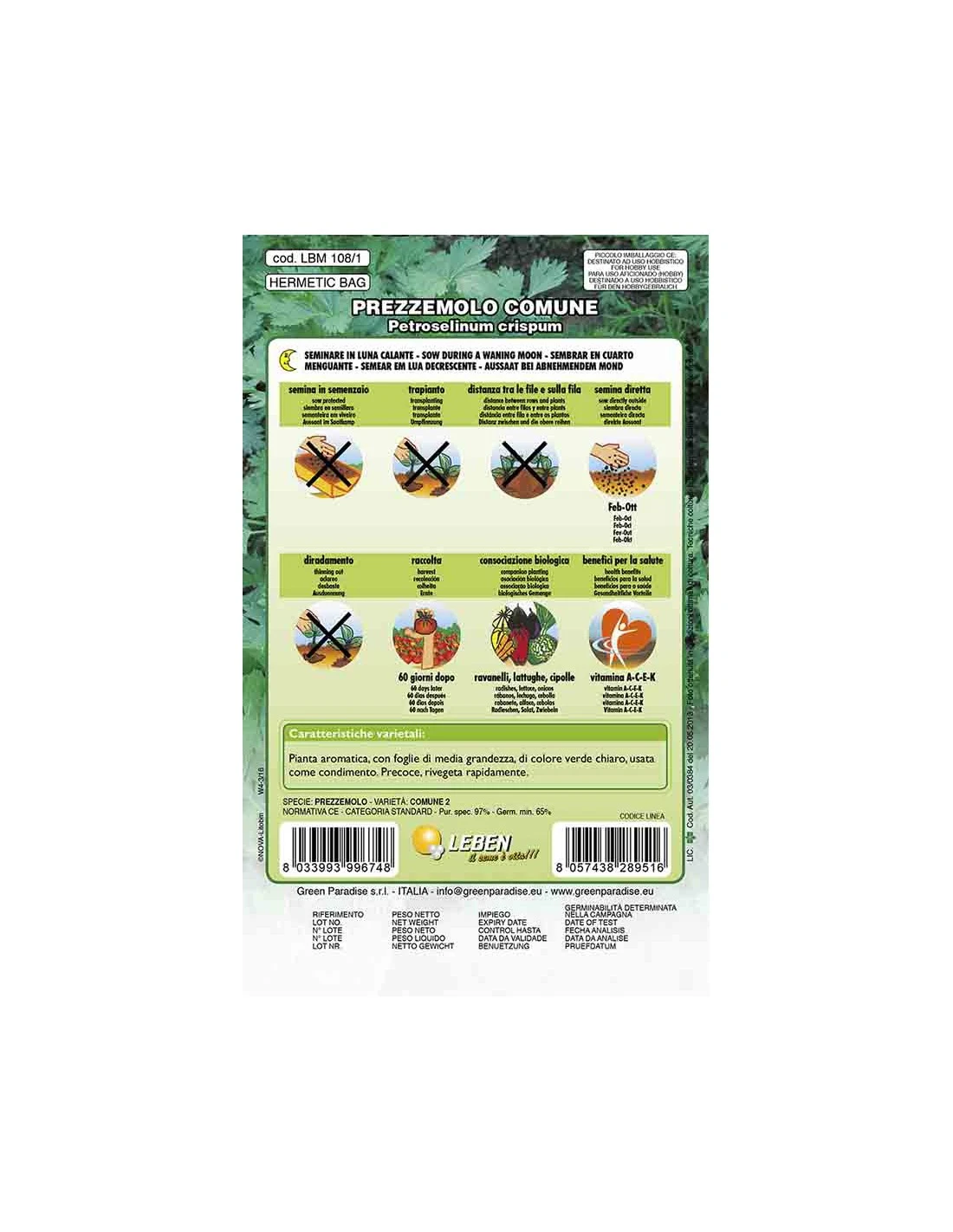 Pianta aromatica, con foglie di media grandezza di colore verde chiaro, usata come condimento. Precoce, rivegeta rapidamente.